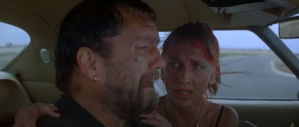 The shot fades to Roop spying on a couple having sex in a field. He’s plotted up on top of an old ammunition bunker. Charlie is relaxing in the car.