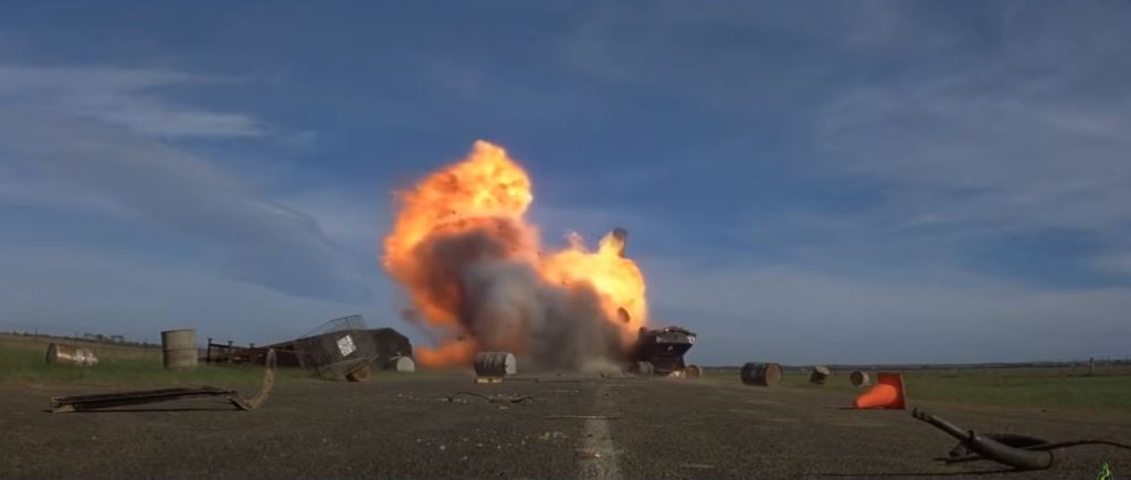 This link to the NFSA website contains an interesting video by Peter Kamen on the setting up of the ‘rocket car’ stunt, featuring behind the scenes footage of the setup of the stunt itself.