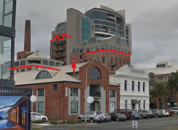 Location: Port Melbourne Gas Works, viewpoint from the junction of Beach Street and Dow Street.