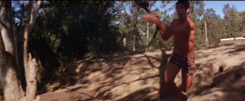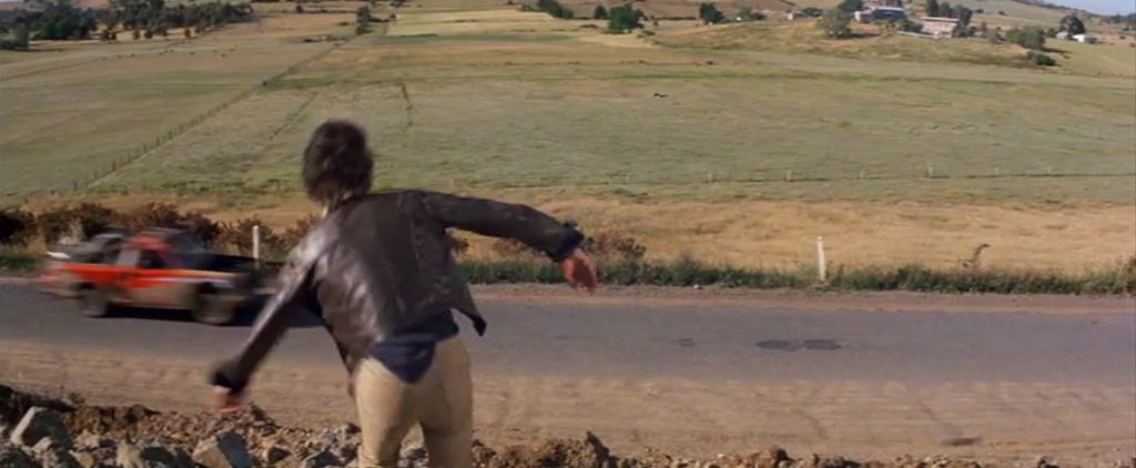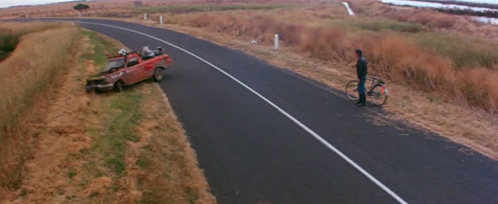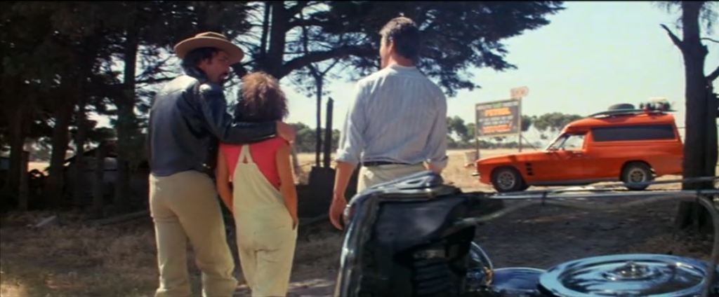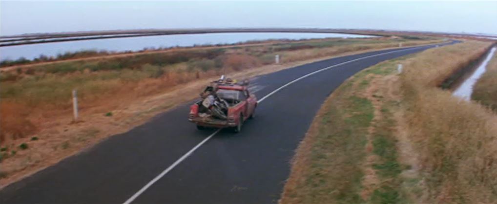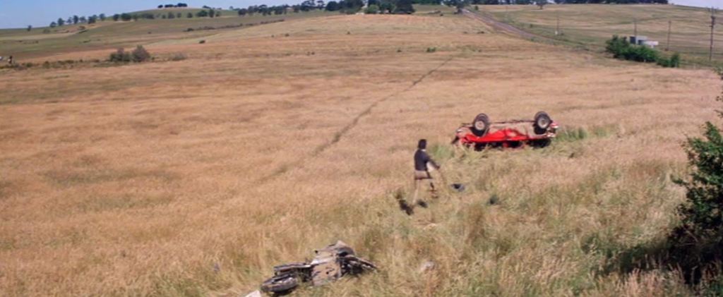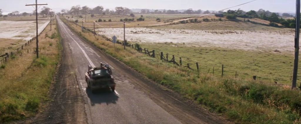 Bubba and the Toecutter ride over, and push Johnny to set fire to the Ute.